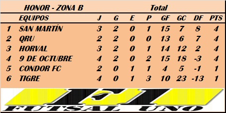 El domingo en las instalaciones de la casa del deporte de Tolhuin, 9 de Octubre se hizo fuerte de local y goleó a Tigre por 9-2. Partido adelantado de la quinta fecha. Finalizado el fin de semana las posiciones en Honor en la “Zona B” quedaron de la siguiente manera.