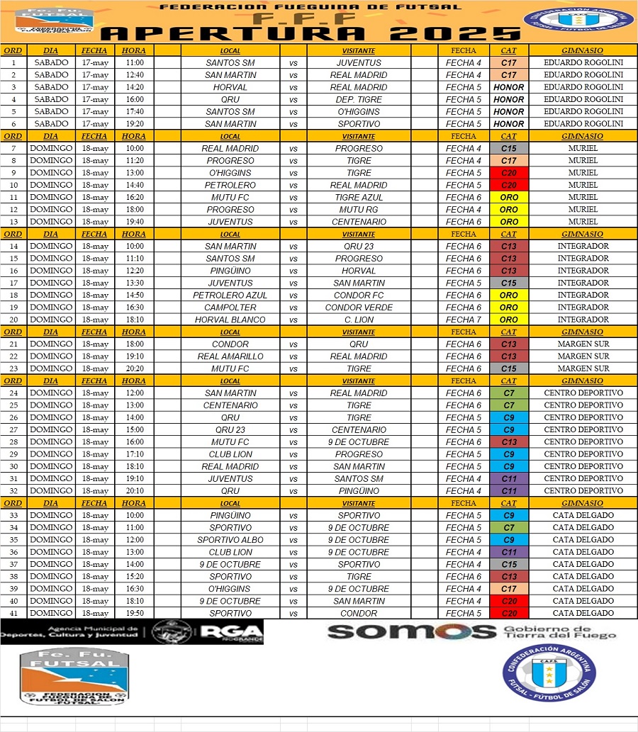 FIXTURE CAFS - 17 y 18 DE MAYO