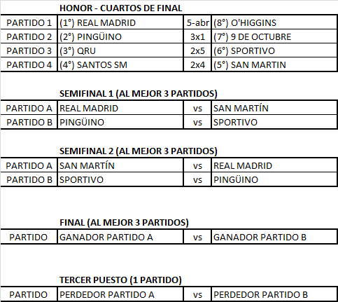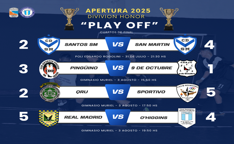 Más tarde, Gabriel Salguero empató 4-4. Sobre el final a dos minutos del final Patricio Guerrero anotó el definitivo gol (que pretestó todo O’Higgins por una carga sobre el arquero dentro del area) con el que Real Madrid lo terminó ganando el partido por 5-4 para meterse en las semifinales. Ahora Real Madrid jugará ante San Martín y Pingüino contra Sportivo al mejor de tres partidos.
