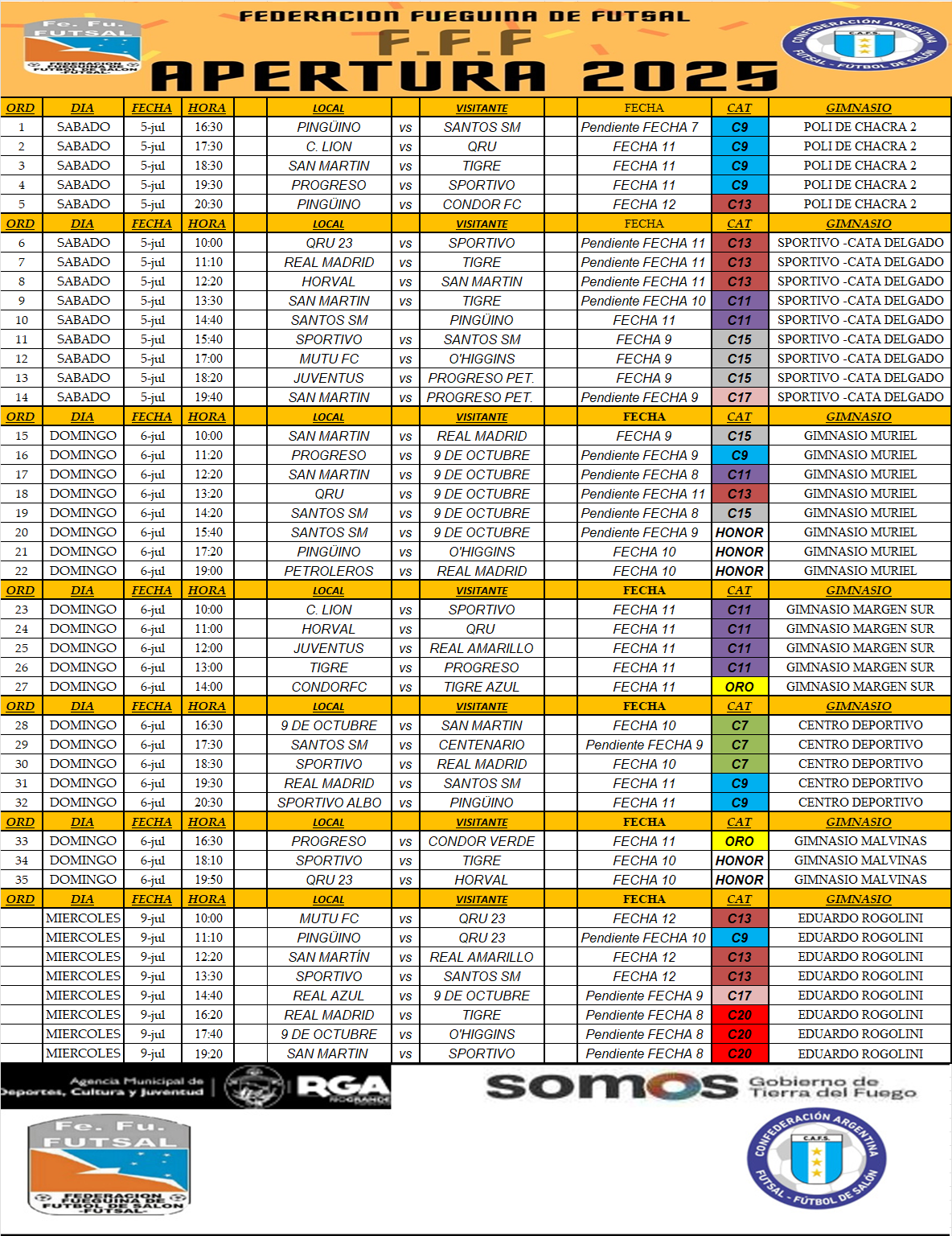 Se dio a conocer la programación para este fin de semana del sábado 5 y domingo 6 de julio. También se adelanta la programación para el feriado del miércoles 9 de julio.