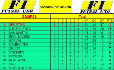 Hoy sábado se jugaron dos partidos de la novena fecha en la máxima división. Al triunfo de Luz y Fuerza del jueves por la noche logrado ante Real Madrid por 6-4 en la Margen Sur, se sumaron los de San Martin como local ante 9 de Octubre de Tolhuin por 5-3, con goles de Franco Toledo (3), Enzo Rocha y Emanuel Baiz.