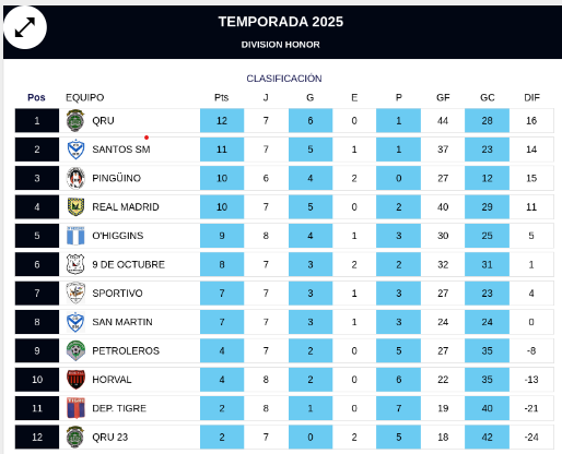En esta división restan por completar dos partidos pendientes. Real Madrid vs Santos y 9 de Octubre vs San Martín.